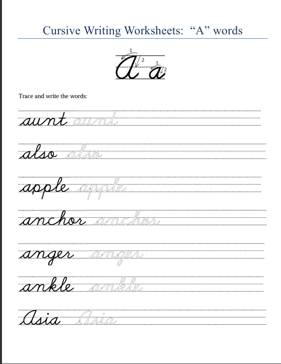 How to Write Cursive A Uppercase & Lowercase (with PDF Worksheets)